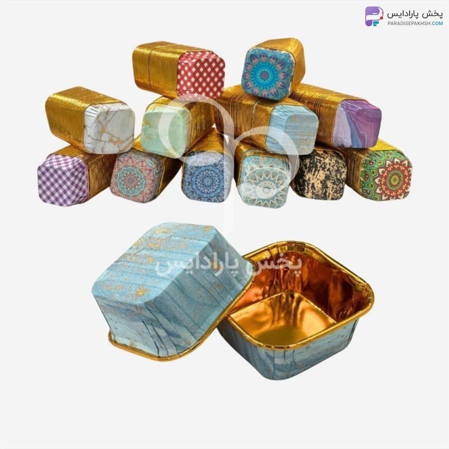 توضیحات کامل مافین مربع متالایز نسوز 50 عددی 8*8 سانت چینی